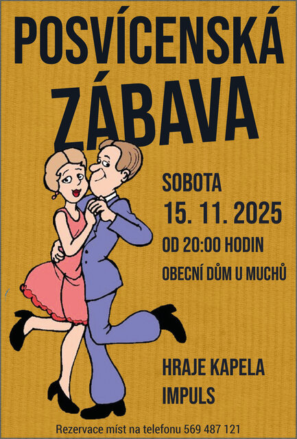 Posvícenská zábava v Obecním domě U Muchů v sobotu 15. listopadu od 20 hodin, hraje kapela IMPULS.
