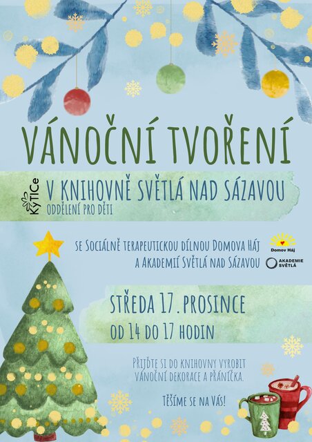 středa 17. prosince od 14 do 17 hodin - vánoční dekorace a přáníčka.
