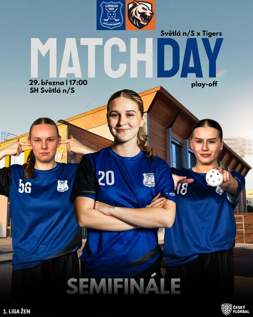 Druhý semifinálový zápas 1. ligy žen ve florbale Sklo Bohemia Světlá n. S. - Prague Tigers Nehvizdy, začátek v 17 hodin.