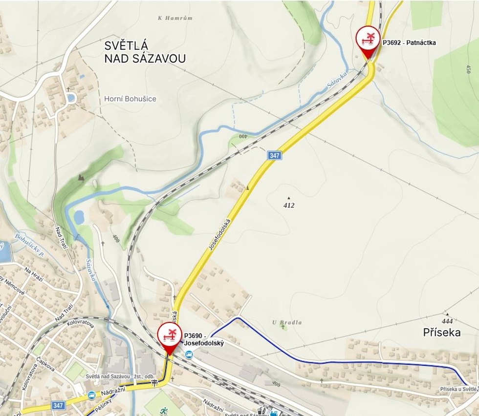 Souběžně s pracemi na přejezdech bude v termínu od 1. 5. do 15. 5. 2026 probíhat akce Posílení vodovodu Příseka u Světlé nad Sázavou.