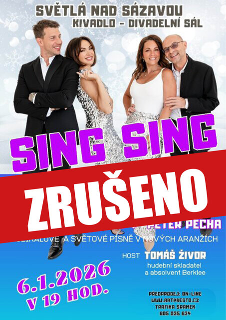 Kamila Nývltová, Tomáš Trapl, Michaela Nosková, Peter Pecha a jejich hudební hosté - to je pěvecké seskupení SING SING, které vám přináší jedinečný koncert plný emocí, barevných hlasových kombinací a písní, které pohladí duši.
